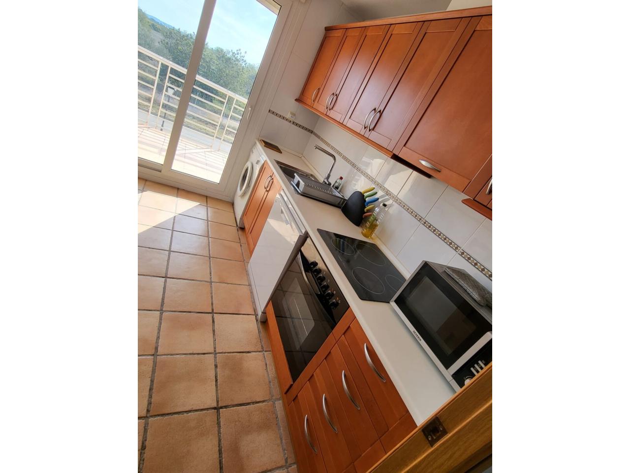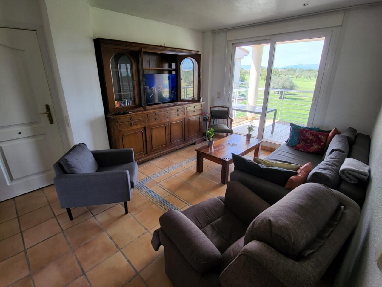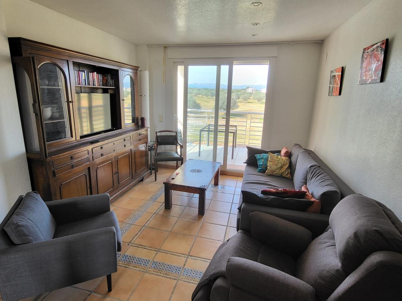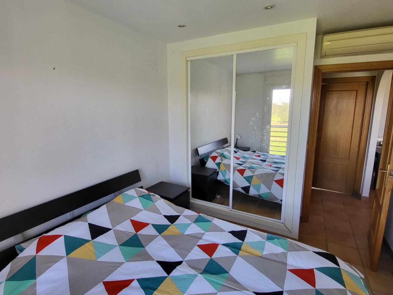 - Un salón - comedor con acceso a la terraza trasera, con vistas a campo de golf - Una cocina independiente con salida a un balcón delantero - Dos habitaciones, una de las cuales, doble - Las tres estancias principales de la vivienda (habitaciones y salón) incluyen sus respectivas máquinas de aire acondicionado, tanto frío como calor - Una plaza de aparcamiento exterior
